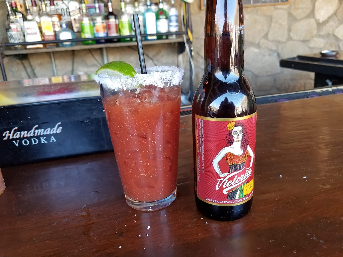 Fun atmosphere. The outdoor bar is in the shade. The music selection is good, and the volume level allows for conversation. The tacos (from next door) are cheap and delicious!