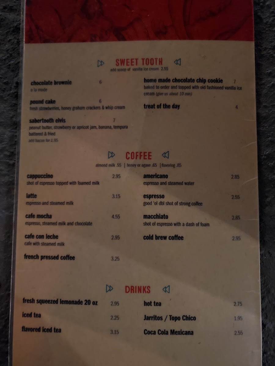 The menu strikes a comfortable balance between familiar favorites and small indulgences, inviting guests to pause and enjoy uncomplicated flavors paired with a friendly, approachable atmosphere. It’s a place where you can savor a casual bite or share drinks with friends without rush or fuss.